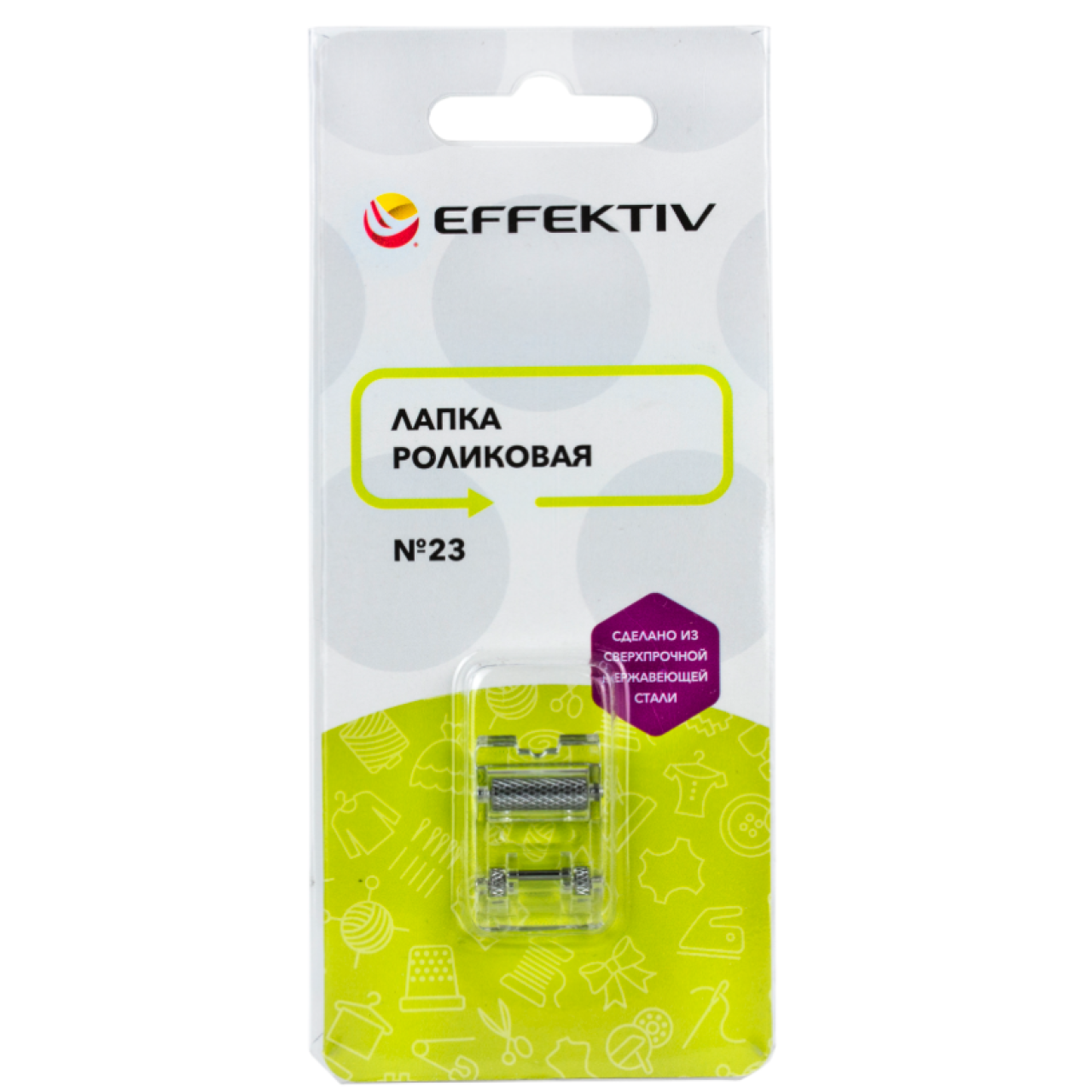Лапка роликовая 5 мм EFFEKTIV №23 используется для пошива сложных тканей (ворсистые ткани, замша, кожа или бархат). Конструкция лапки обеспечивает ее идеальное скольжение по материалу, что позволяет проложить ровную и аккуратную строчку. Лапка подходит для машинок, в которых есть строчка зигзаг 7мм, при этом необходимо установить максимальное отклонение иглы на 5 мм. Она устанавливается в универсальный держатель, поэтому не потребуется покупать специальный адаптер. При работе с ней поворот строчки следует делать на короткой длине стежка. Это приспособление гарантирует красивую строчку, отсутствие заломов во время шитья, некрасивых следов на ткани.