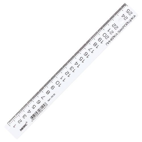 Линейка изготовлена из непрозрачного пластика, имеет гладкую поверхность.