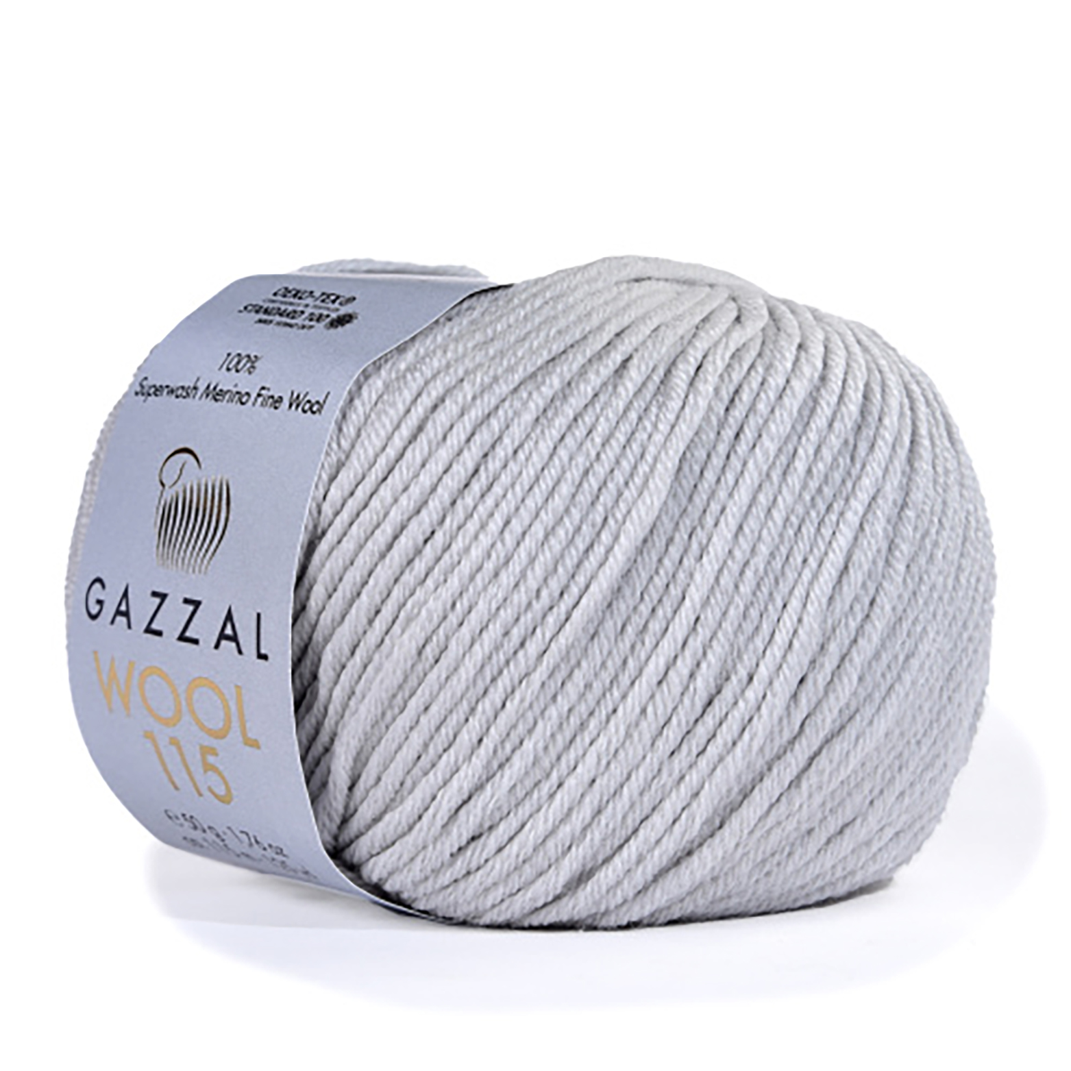 Пряжа GAZZAL Wool 115 цвет 3304 св. серый 50 гр. 115 м 100% тонкая шерсть мериноса супервош