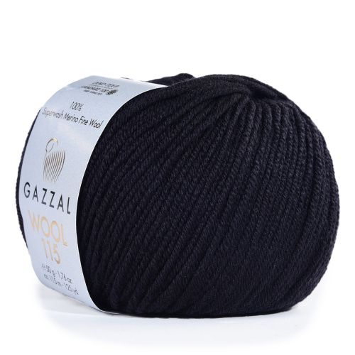 Пряжа GAZZAL Wool 115 цвет 3307 черный 50 гр. 115 м 100% тонкая шерсть мериноса супервош