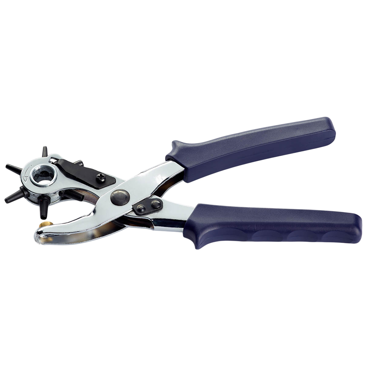 Ручные щипцы для пробивания отверстий- пробойник для кожи, понравится тем, кто шьет одежду, занимается ее ремонтом или создает оригинальные поделки. Щипцы позволяют в домашних условиях пробивать одинаковые аккуратные отверстия для установки люверсов, хольнитенов, ременных пряжек с 'язычком' и другой фурнитуры. Инструмент выполнен из стали, что позволит использовать пробойник долгое время. Ручки анатомической формы обработаны нескользящим покрытием, очень удобны в работе. Фиксатор удерживает пробойник закрытым, когда он не используется, что позволяет экономить место при хранении. Кроме натуральной кожи щипцы подходят для искусственной кожи, замши и нескольких слоев пленки.