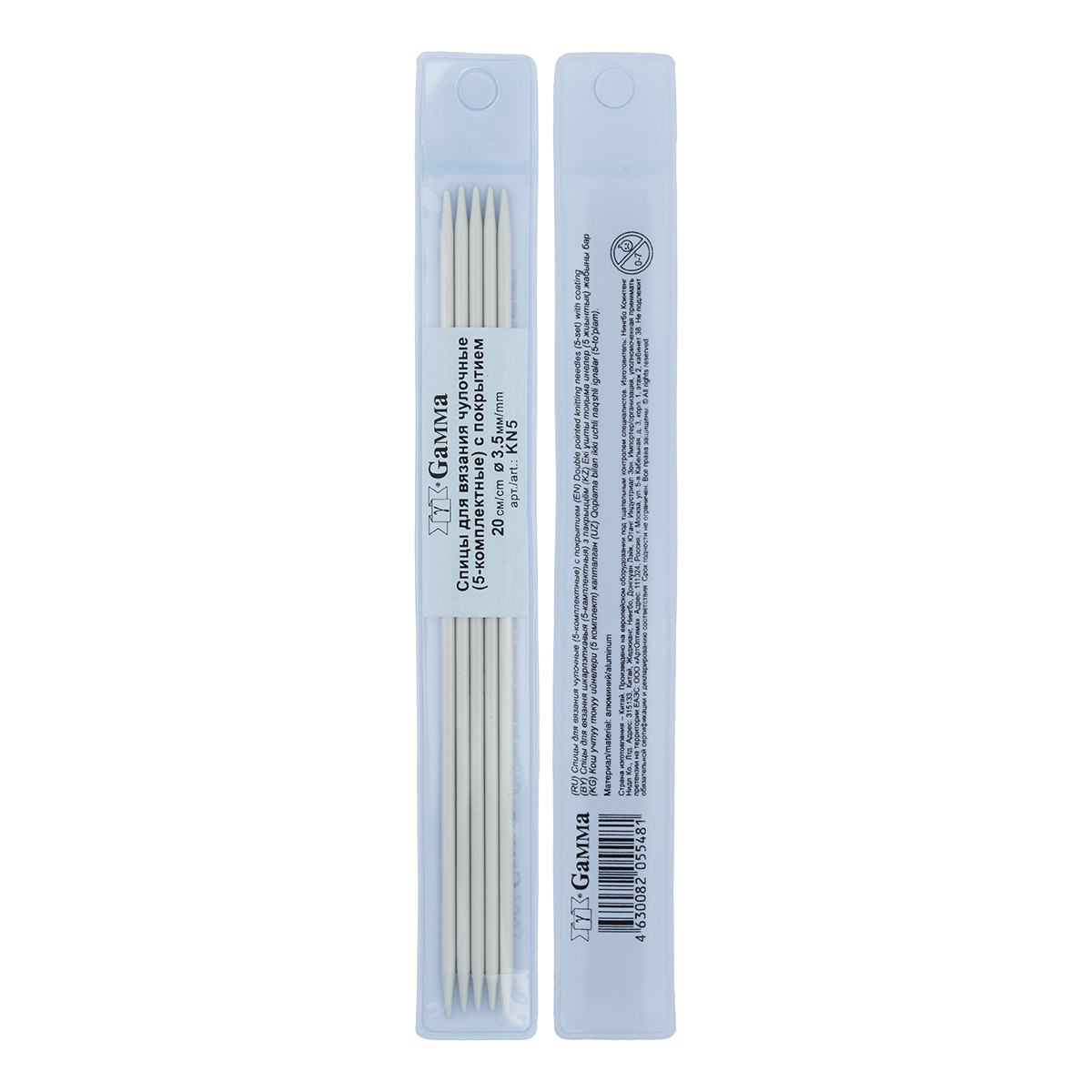 Спицы 5-комплектные "Gamma" KN5 имеют покрытие, благодаря, которому петли хорошо скользят по поверхности спиц. Спицы прочные, легкие, гладкие, удобные в использовании. Кончики спиц закругленные, гладкие и ровные.