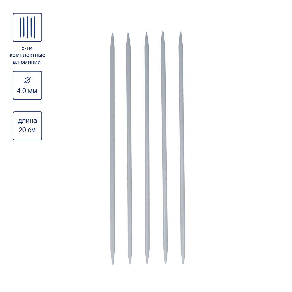 Спицы GAMMA 5-ти компл. чулочные KN5 алюминий d 4.0 мм 20 см 5 шт с покрытием