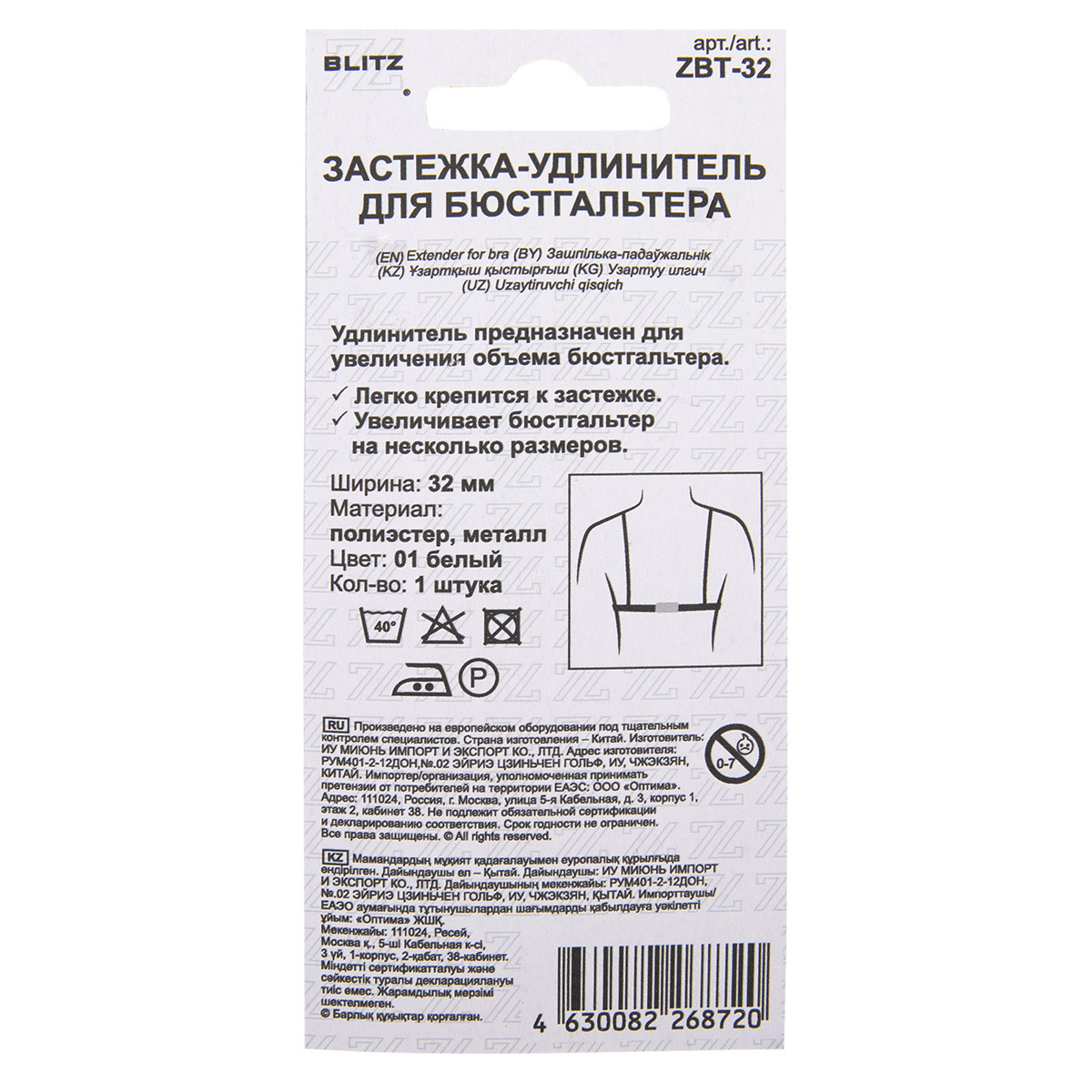 Застежка для увеличения объема "BLITZ" ZBT-32 полиэстер 32 мм 1 шт. 01 белый